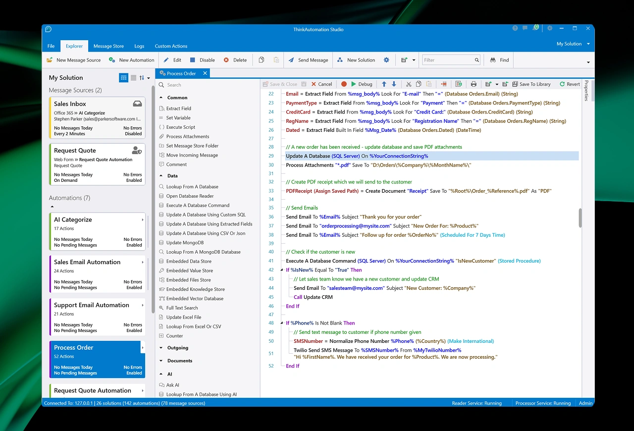 Connect any number of services in your stack together via ThinkAutomation. |